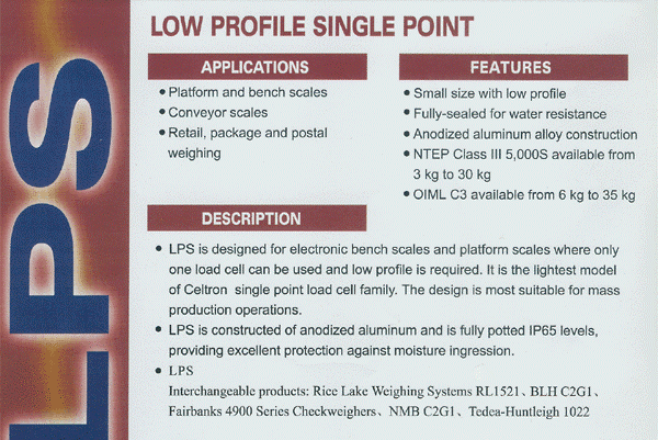 Celtron LPS-60KG單點(diǎn)式稱(chēng)重傳感器應(yīng)用:平臺(tái)秤,包裝機(jī),計(jì)量/灌裝,皮帶秤/輸送機(jī)秤,運(yùn)作檢查秤,零售秤/計(jì)數(shù)秤。