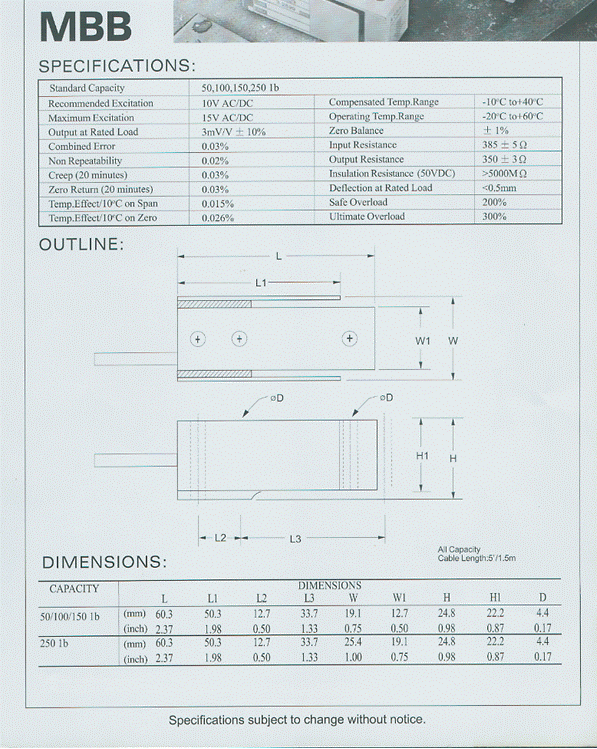 MBB-250LB 梁式稱重傳感器(load cell) explain "