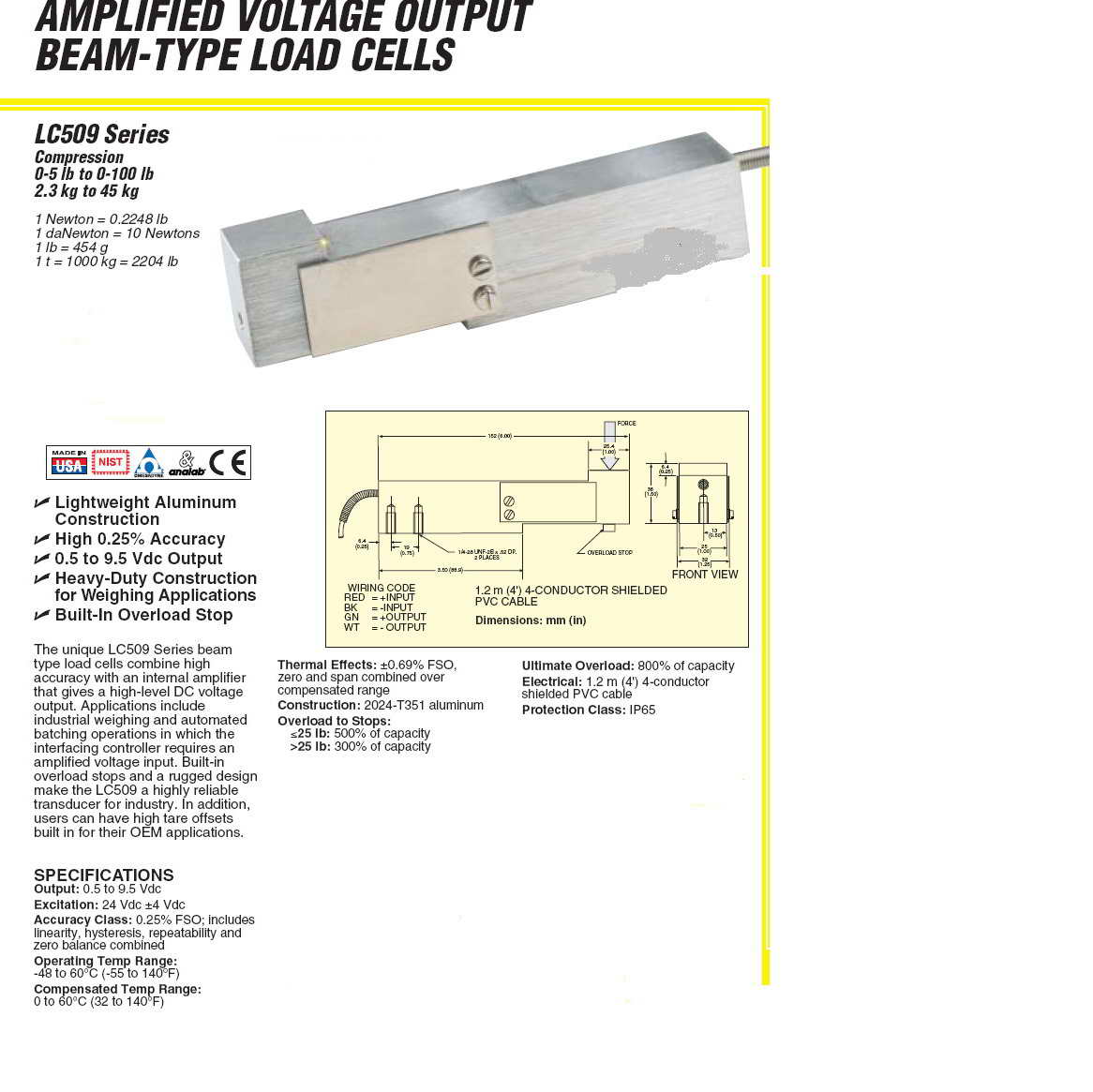 | 產(chǎn)品名稱:Omega LC509 懸臂梁傳感器(load cells) |