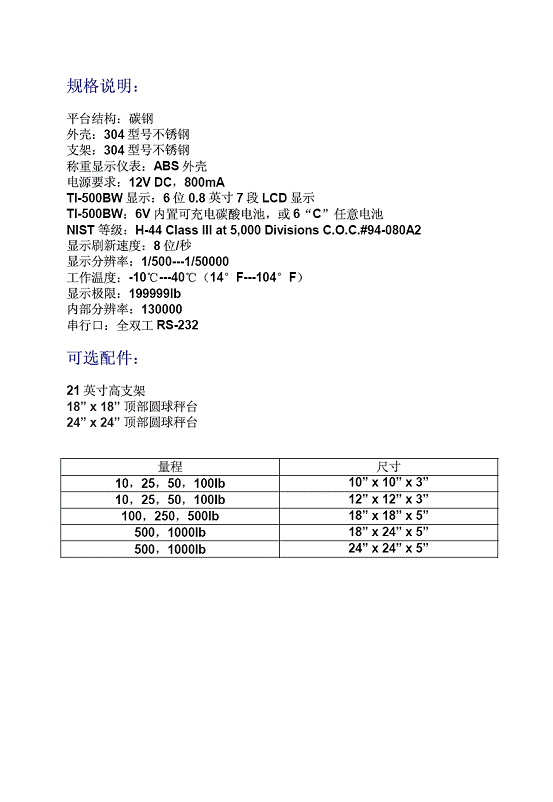 | 產(chǎn)品名稱:Transcell MSB-500BW 工業(yè)秤(scales) |