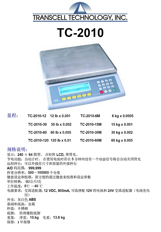 | 產(chǎn)品名稱:Transcell TC-2010 計數(shù)秤(scales) |