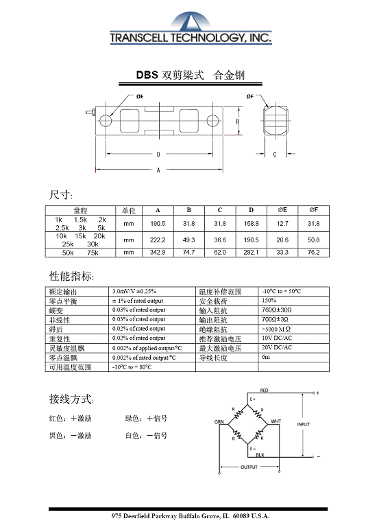 Transcell DBS 雙剪梁式稱(chēng)重傳感器(load cells)