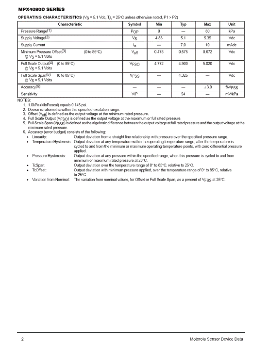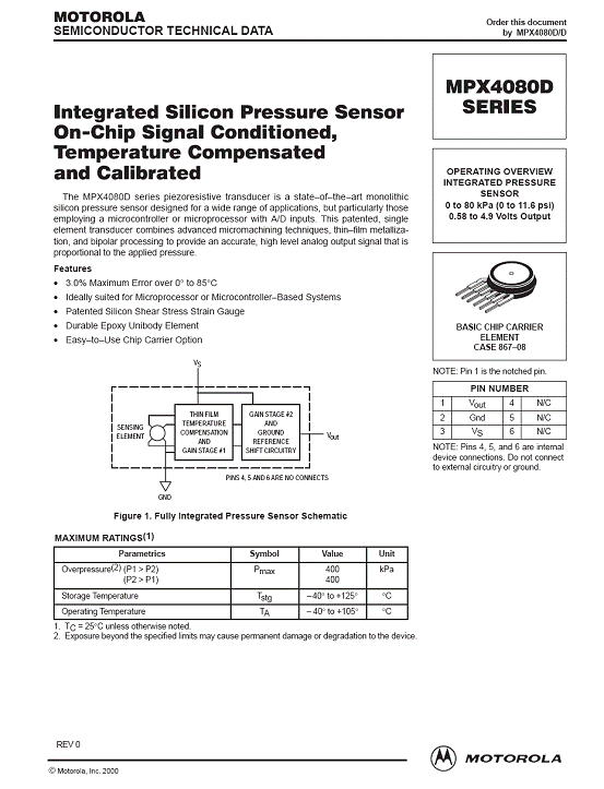 MPX4080D 氣壓傳感器(sensor)