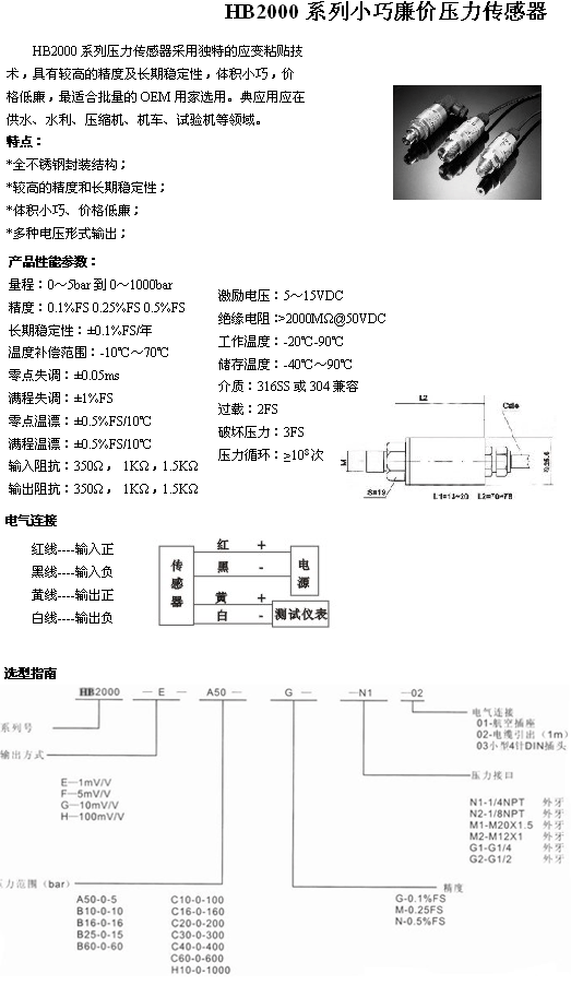 | 產(chǎn)品名稱:HB2000系列 小巧廉價壓力傳感器(pressure sensor) |