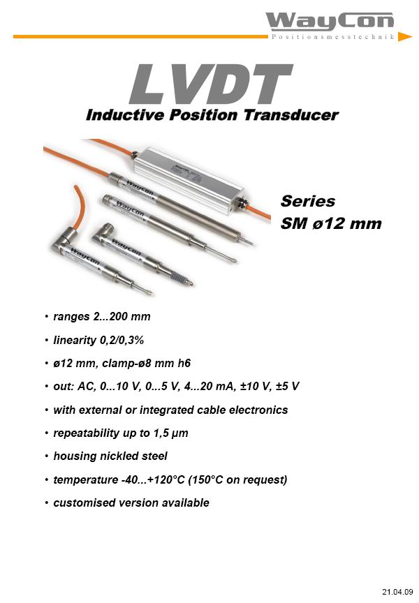 Inductive Sensor LVDT: SL / SM
